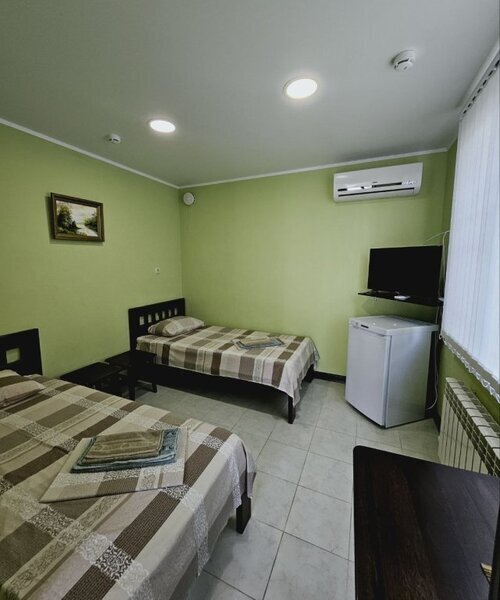 К размещению подготовлены две категории номеров. В распоряжении гостей будет комфортабельная мебель и современная техника, среди которой телевизор, кондиционер и холодильник.