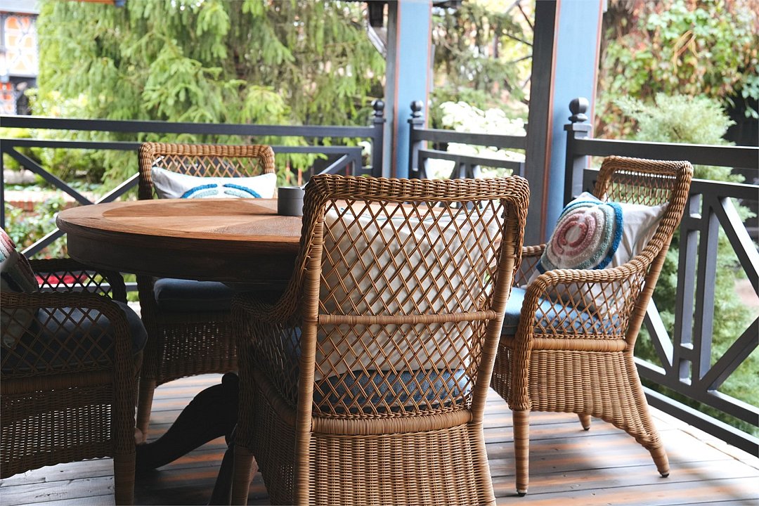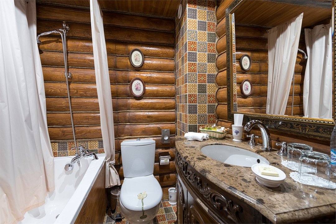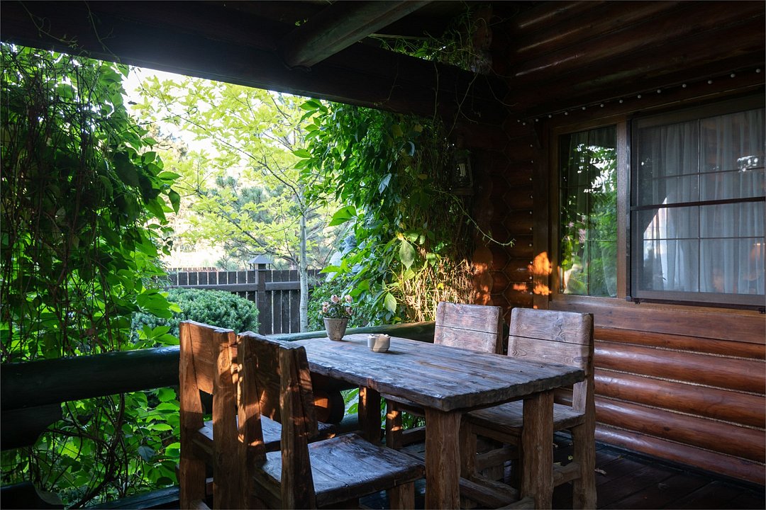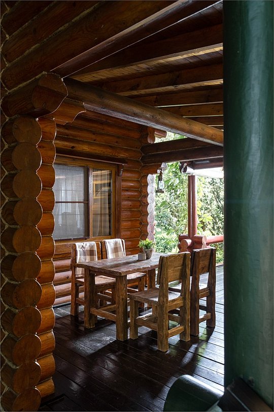 Номер класса комфорт, который выходит на террасу с деревянными столами и стульями. Кровати раздвигаются, что позволяет разместить гостей одного пола. Пожалуй, здесь мог бы поселиться удачливый охотник. Трофеи, украшающие интерьер дома, говорят именно об этом увлечении.Услуги и удобства
