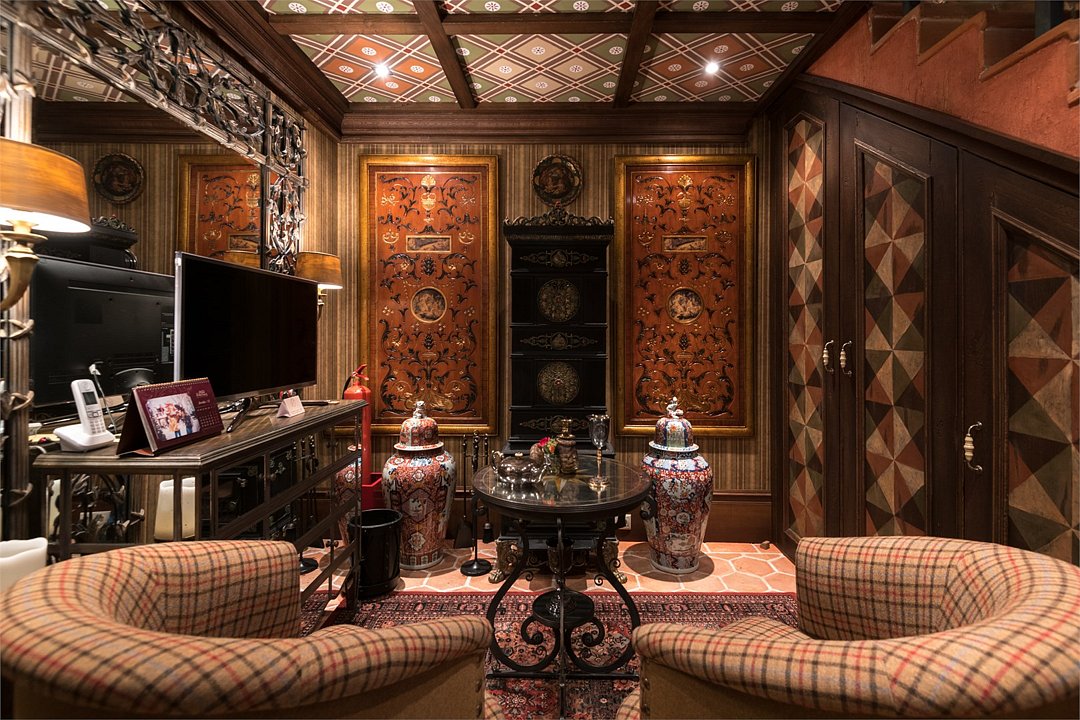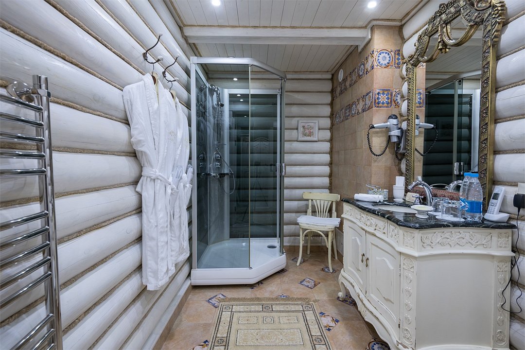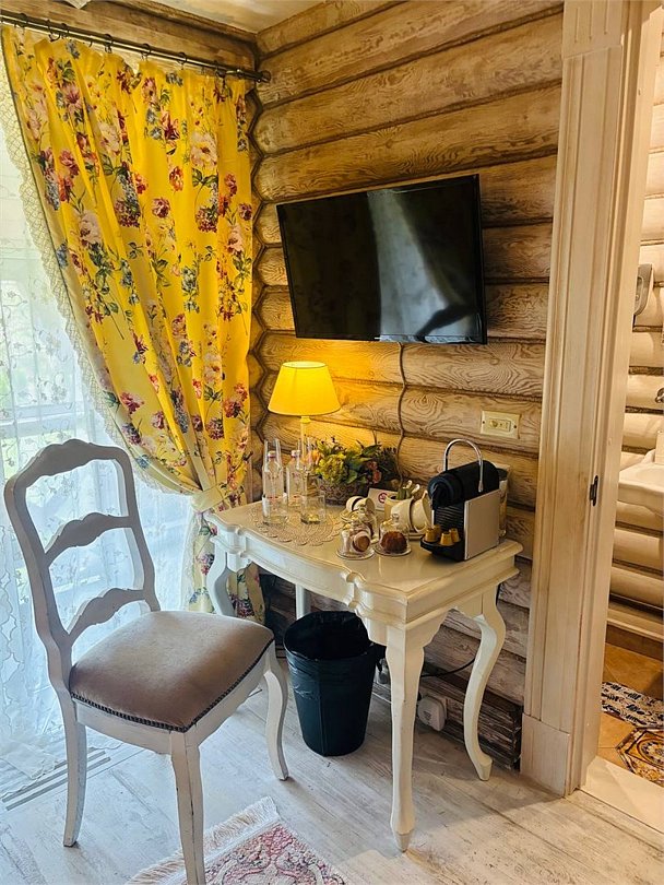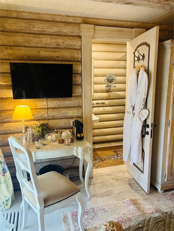 Коттедж, в котором 3 спальни, уютная гостиная с камином, обеденный зал, балкончик в восточном стиле и просторная летняя терраса с плетеными столиками и креслами. В Шале будет комфортно большой семье или компании, решившей побыть вместе, отметить торжество в запоминающейся обстановке. Это пространство, где «живут» удивительные вещи с историей, которую они готовы рассказать своим гостям. Виды из окна: в парк или во двор отеля. Площадь номера: 220 кв.мУслуги и удобства