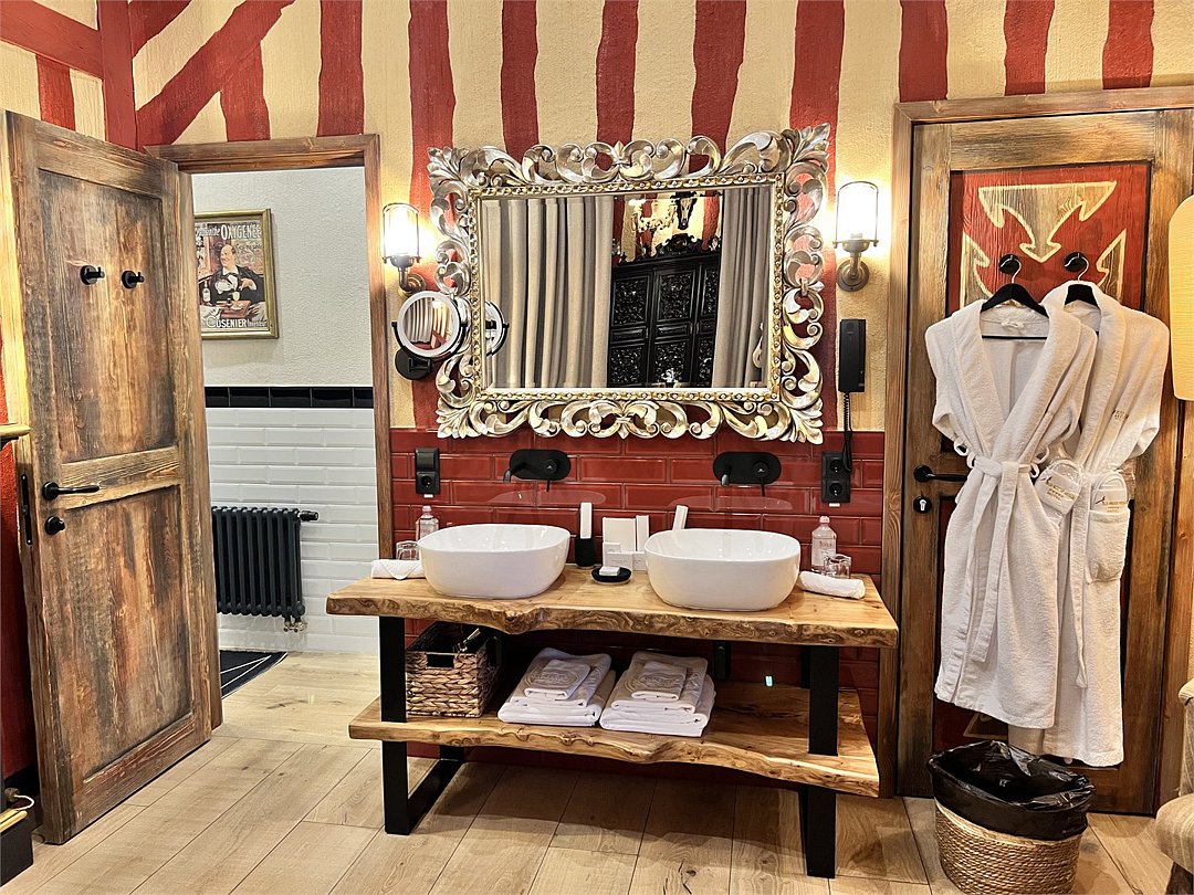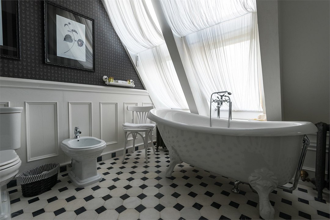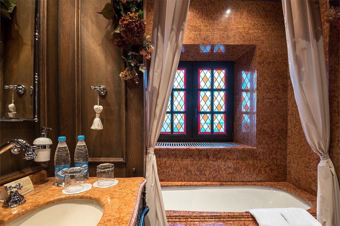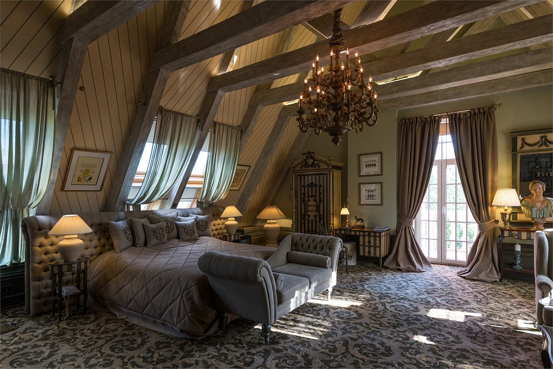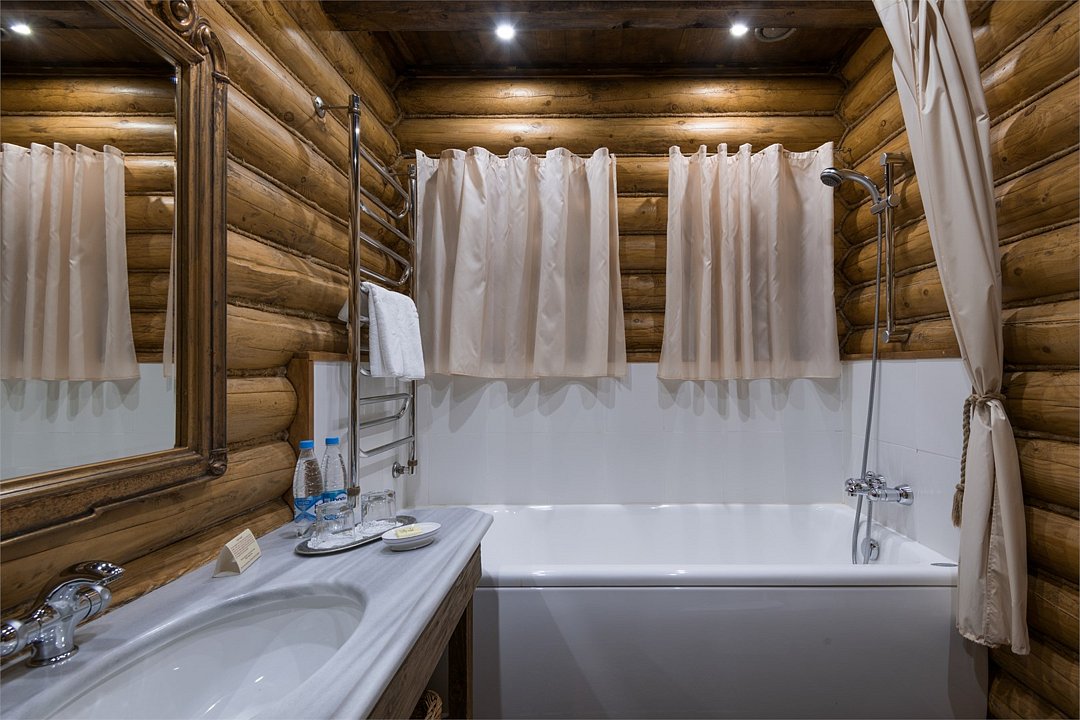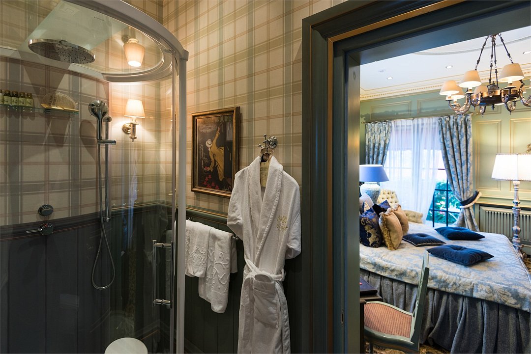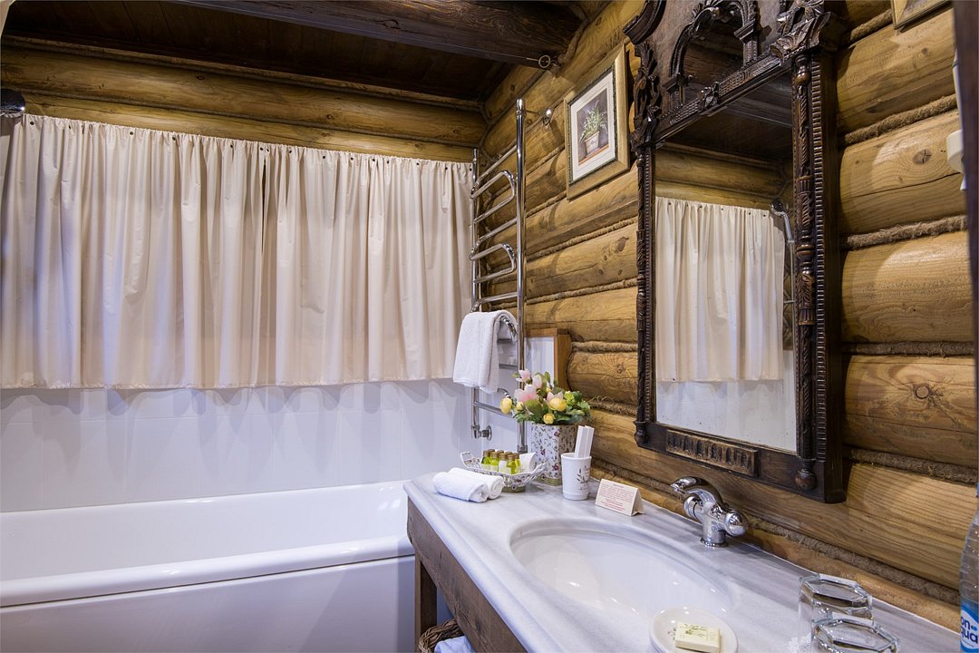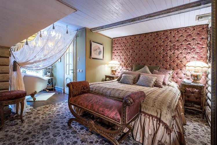 Роскошный двухкомнатный номер с двухспальной кроватью и диваном. Комнаты словно «перетекают» одна в другую. Романтичное и слегка игривое настроение пространства не знает границ. Даже ванна, которая располагается в спальне у окна, не отделяется от остального пространства (прочие атрибуты санузла помещены в отдельную комнату). Номера расположены на втором и третьем этажах комплекса Шато. Вид из окон: на реку. Площадь номера: 48 кв.мУслуги и удобства