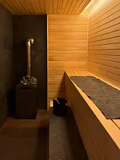 Позвольте себе насладиться расслабляющим паром в русской бане, окруженной панорамными окнами, которые открывают чудесный вид на окружающий пейзаж. Из бани есть прямой выход к бассейну — идеальное место для отдыха и восстановления сил.