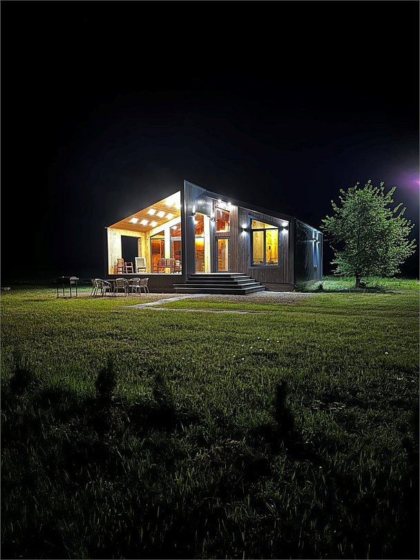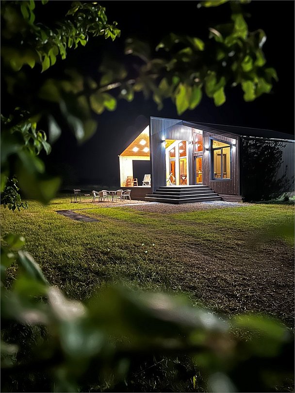 Два уютных мини-коттеджа в стиле Barn House. 30 м² тишины, комфорта и отдыха в гармонии с природой. Ваш уединённый уголок в стиле Barn House — это пространство, где царит атмосфера покоя и расслабления. Деревянные балки, теплое освещение и панорамные окна создают ощущение домашнего уюта вдали от городской суеты.