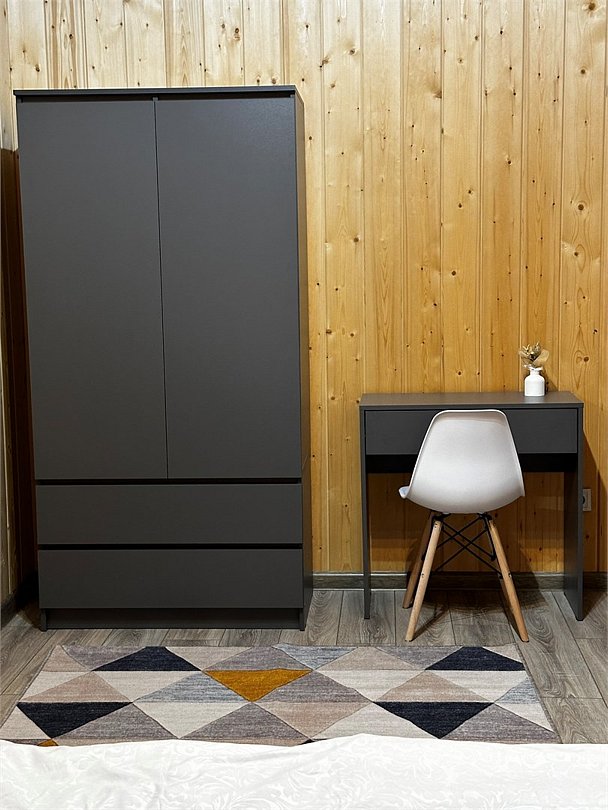 В спальнях двуспальные кровати, письменные столы, стулья, шкафы, встроенные зарядные станции у кровати, бра. Прочее: халаты, тапочки, питьевая вода объёмом полтора литра, чай, кофе, соль, перец, штопор, телевизор, бесплатный Wi-Fi, кондиционеры, теплый пол.