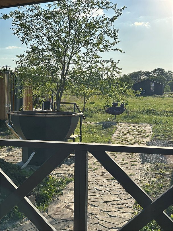 Гости могут насладиться банным чаном с горячей водой на свежем воздухе, наполненным ароматными травами и открывающим прекрасный вид на природу. Это идеальное место для расслабления и восстановления сил в окружении живописных пейзажей.