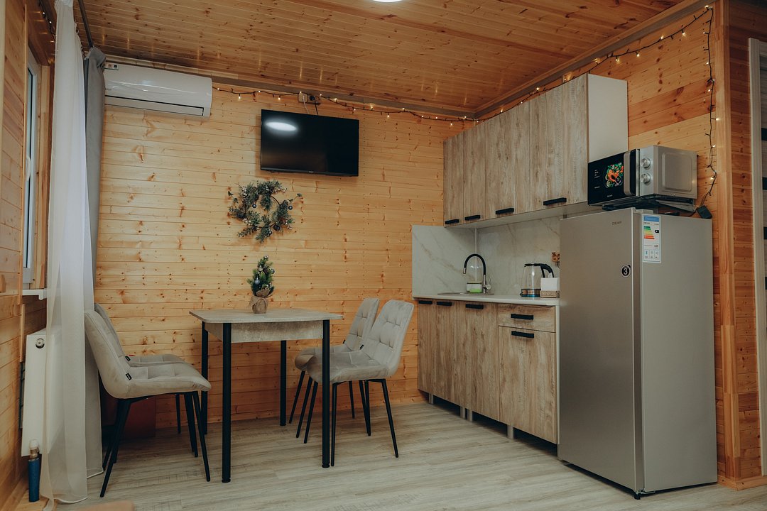 В этом номере вы найдете все, что необходимо для комфортного пребывания: собственная кухонная зона со всем необходимым, ванная комната с душевой кабиной для утреннего бодрящего душа, две уютные спальные комнаты для спокойного отдыха, и, конечно же, задняя терраса с мангальной зоной для приятного времяпрепровождения на свежем воздухе.