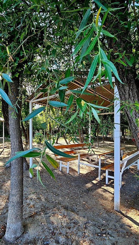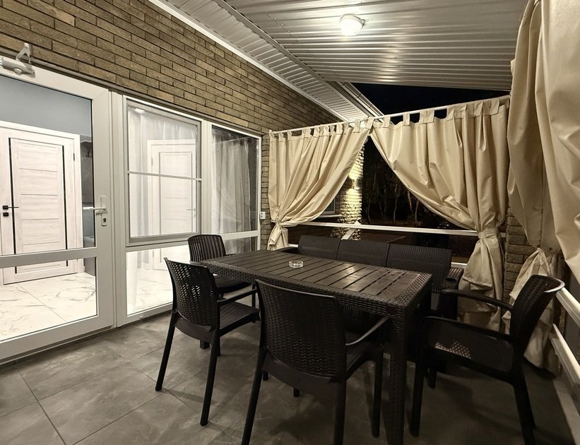 В двухкомнатном номере вы найдете все для вашего удобства: кухню с полным набором посуды, холодильник, микроволновую печь, варочную панель, чайник, чайный и кофейный набор. Постельное белье премиум-качества, полотенца, ванные принадлежности, тапочки, фен. Телевизор Яндекс тв, wi-fi, кондиционеры. У каждого номера своя большая терраса с садовой мебелью и мангальная зона.