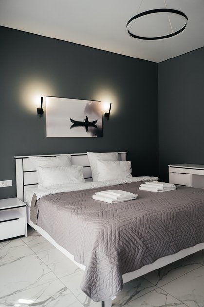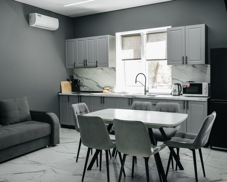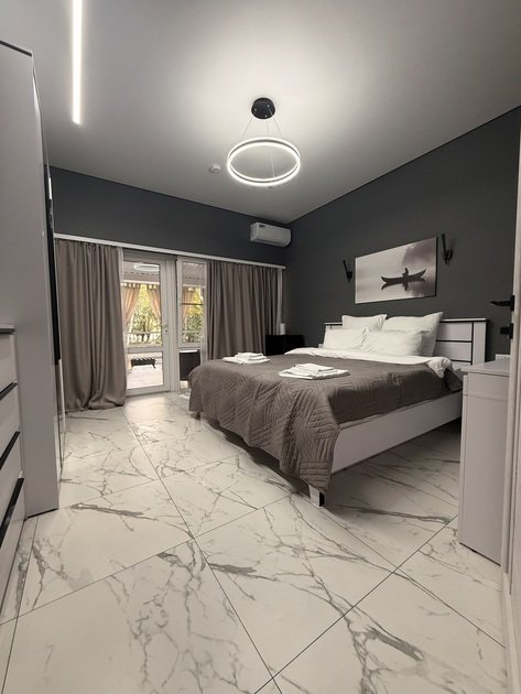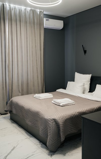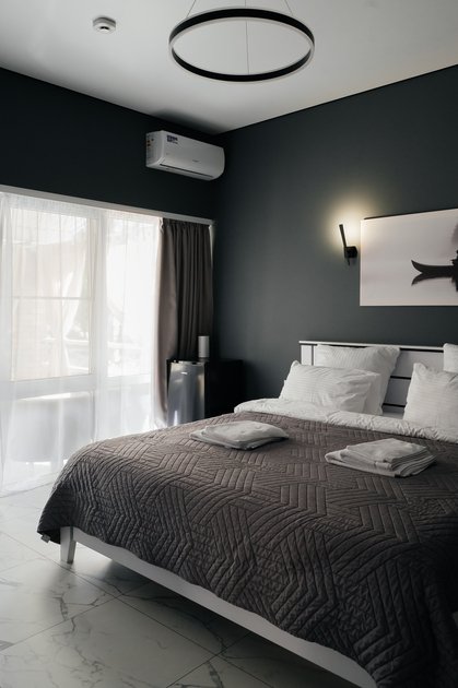 В однокомнатном номере вы найдете все для вашего удобства: кровать king-size с ортопедическим матрасом, холодильник, чайник, чайный и кофейный набор. Постельное белье премиум-качества, полотенца, ванные принадлежности, тапочки, фен. Телевизор Яндекс тв, wi-fi, кондиционер. У каждого номера своя большая терраса с садовой мебелью и мангальная зона.