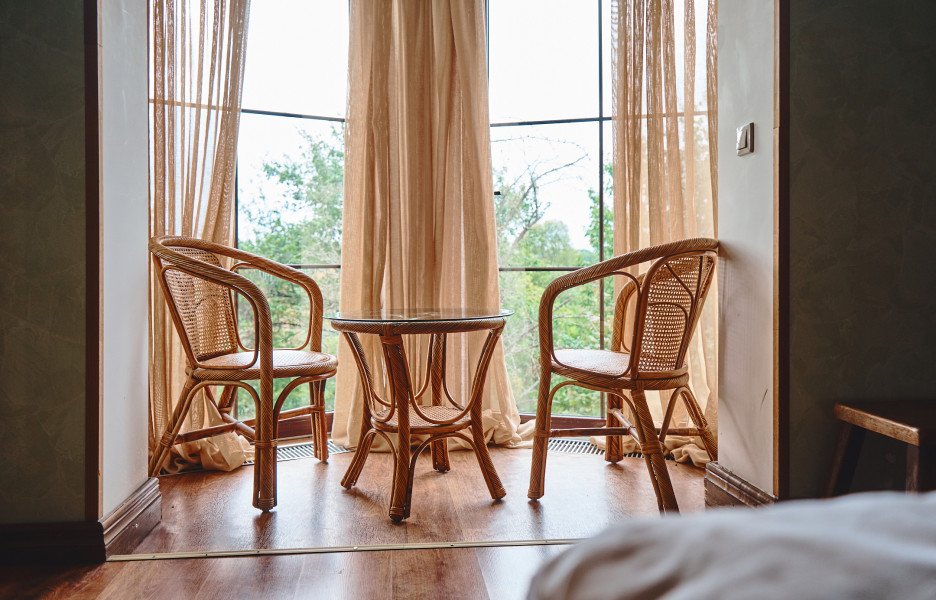 Гостей ждут комфортабельные номера, оформленные с вниманием к деталям, создающим атмосферу домашнего уюта. Из окон номеров и уютных уголков на территории открываются захватывающие дух виды на окружающую природу.