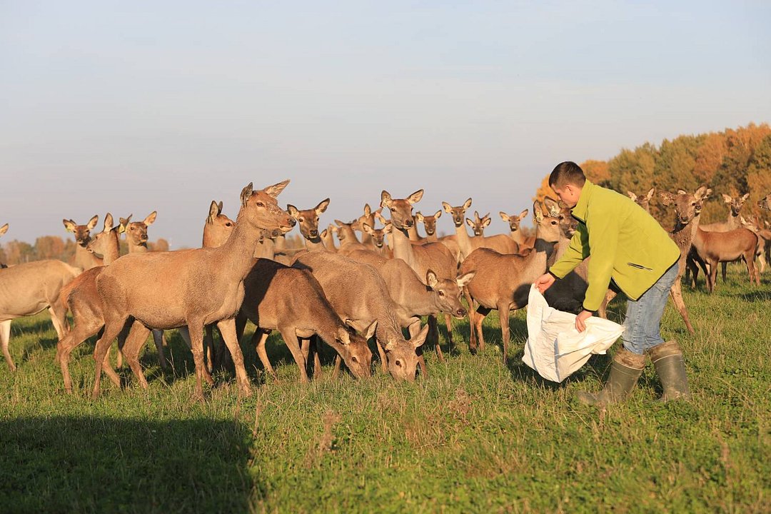 Питаются свежей травой, овсом, солью, сеном и сенажом. В настоящее время ферма поставляет на внутренний и внешний рынки панты в объеме 2000 кг в год.