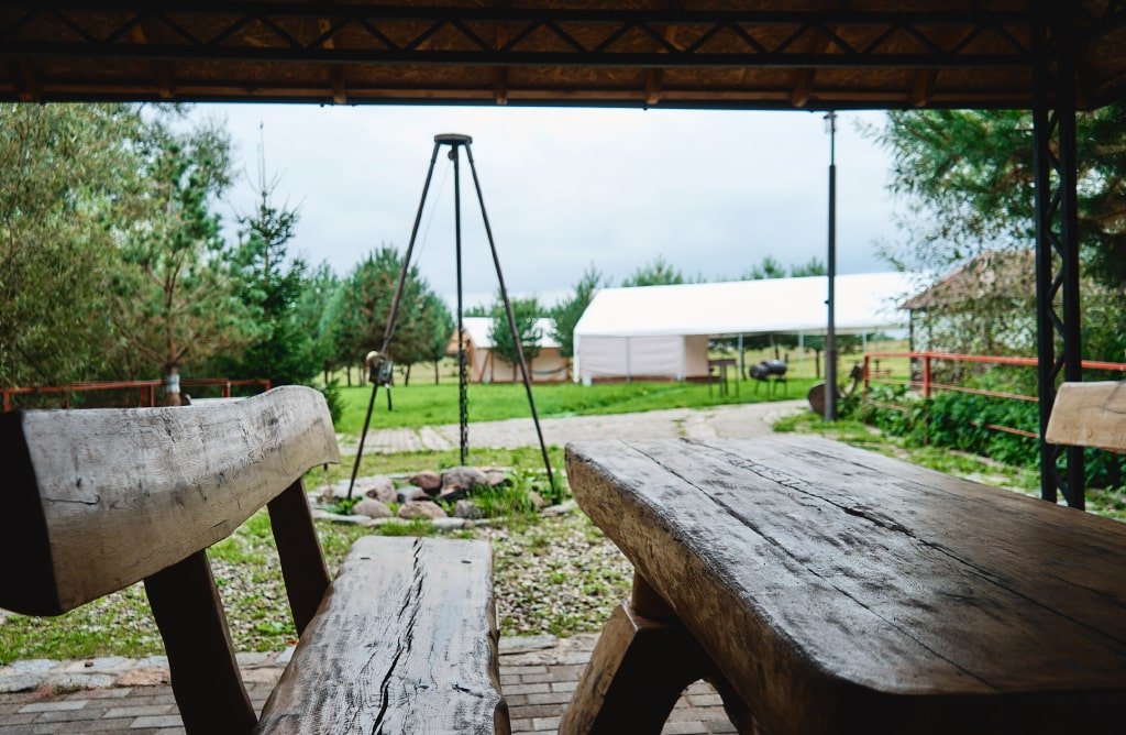 - Открытая беседка, кострище.