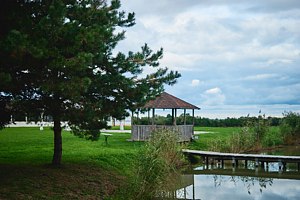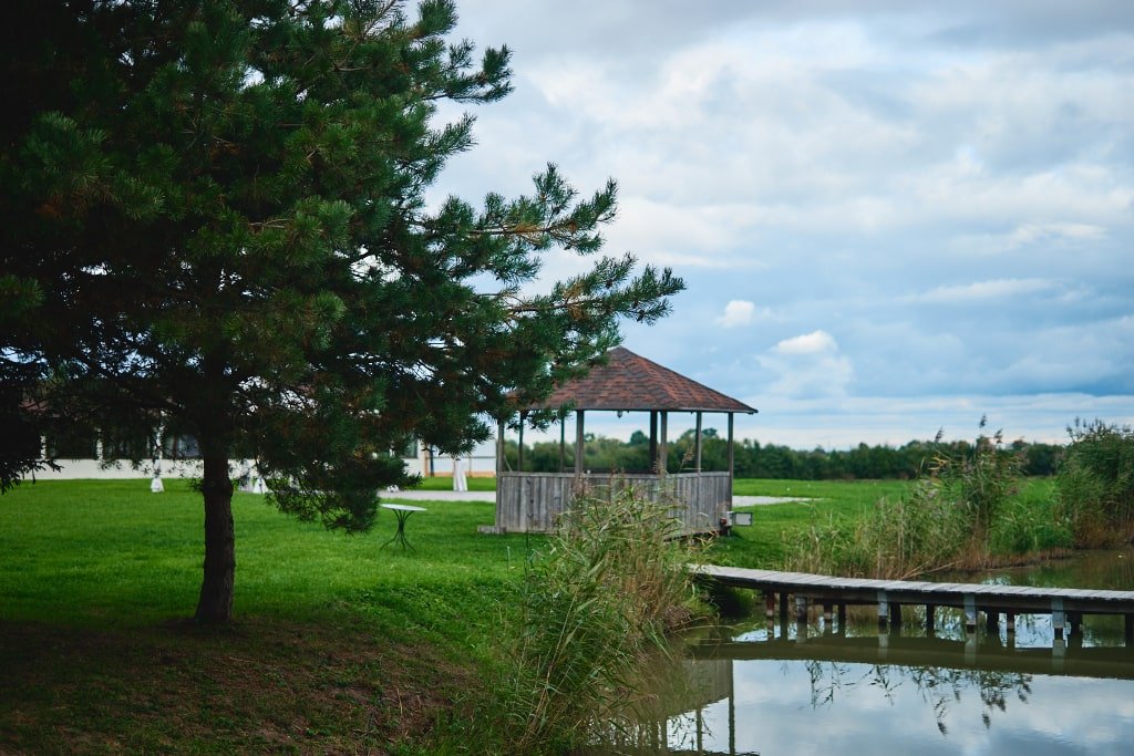 - Закрытая беседка на пруду.