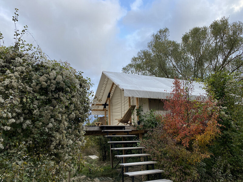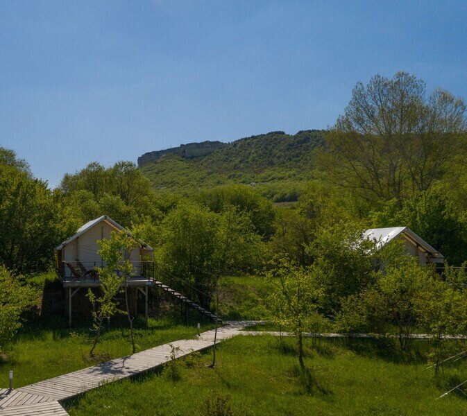 Для проживание предлагается 13 шатров, оборудованных всем, что может понадобиться во время отдыха на природе. Имеется личная туалетная и душевая комната, сплит-система и зона отдыха. Все шатры располагаются на отдельных площадках, в немалом удалении друг от друга, что позволит всем проживающим ощутить атмосферу приватности и уединения.