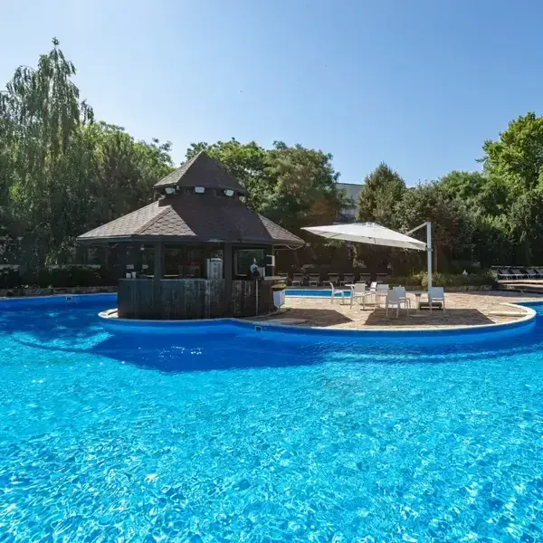 Тип бассейна: открытый бассейнРядом с бассейном: шезлонги, зонтикиОдной из главных особенностей отеля «Рассветы Закаты» является открытый бассейн поистине впечатляющих размеров — 1500 кубометров воды, расположенный рядом с жилыми корпусами. Это крупнейший открытый бассейн, который можно найти на территории Крымского полуострова.