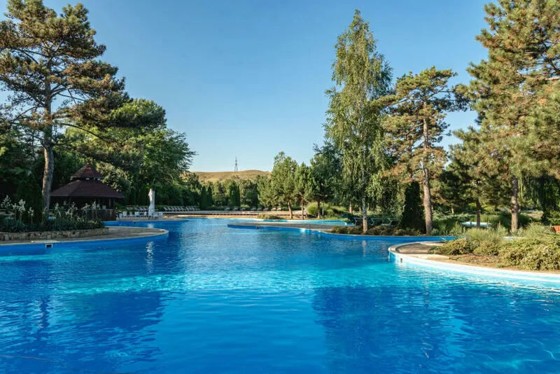 - Пять открытых бассейнов, в том числе самый большой в Крыму - 1500 м3;