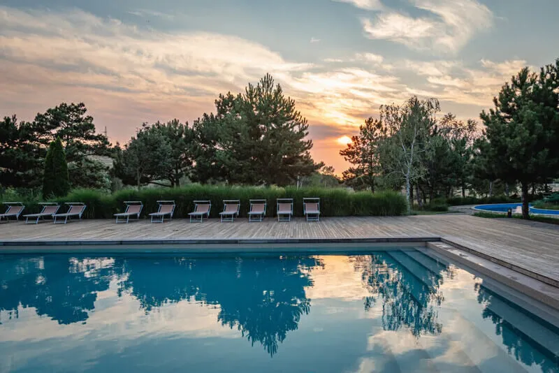 Одной из главных особенностей отеля «Рассветы Закаты» является открытый бассейн поистине впечатляющих размеров — 1500 кубометров воды, расположенный рядом с жилыми корпусами. Это крупнейший открытый бассейн, который можно найти на территории Крымского полуострова.