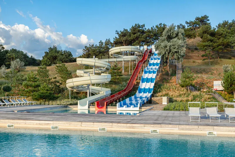 В аквапарке посетителей ждут невероятные ощущения. Отель гордится тем, что может предложить гостям три уникальные водные горки. От головокружительных спусков до захватывающих вихревых потоков, каждая горка имеет свою особенность и обещает незабываемые моменты веселья.