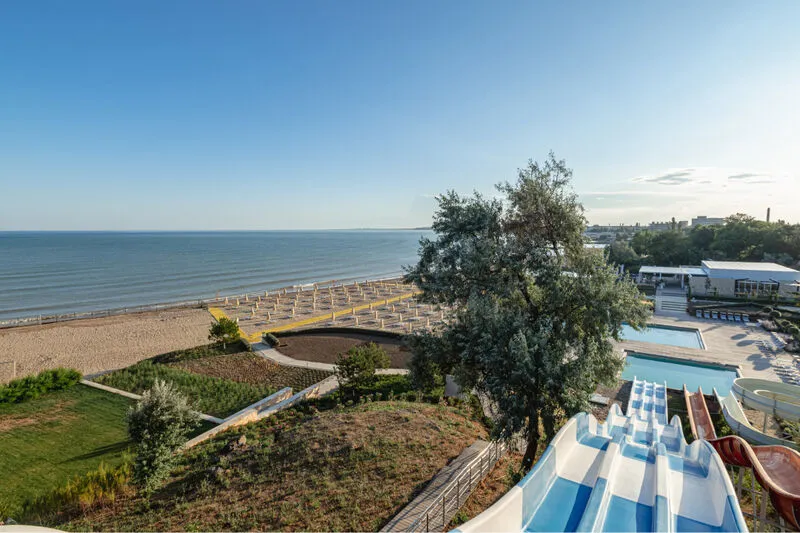 ДостоинстваОтдых здесь прошёл замечательно. Ландшафтный дизайн, да и в целом территория очень красивы и ухожены! Есть бассейны разной глубины, тщательно убираются. На детском есть горки, фонтан! Плюс здесь находятся озёра, где можно порыбачить, просто походить рядом. На прибрежной зоне высажена лаванда и много кустарников. Чудо! Пляж чистый. Проходит на берегу зарядка с инструктором под весёлую музыку. Всё здесь просто потрясающе!!!