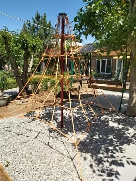 Территория комплекса полностью ограждена. Большое количество цветов и другой зелени произрастает на площади 0,4 гектара. Гостевые дома построены из натурального материала – ракушечника. На территории базы есть собственная столовая, игровая площадка для детей, дискотека, караоке, просторный бассейн, джакузи, спортивные площадки.