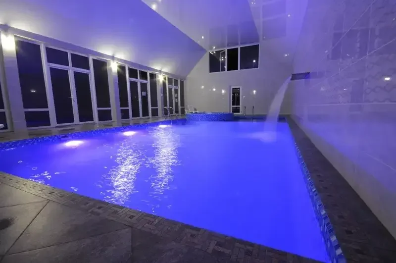 Тип бассейна: крытый бассейнВода в бассейне: подогреваемый бассейнГлубина: 150 смРасслабьтесь под успокаивающий шум искусственного водопада, который также выполняет функцию гидромассажа для вашего тела. Насладитесь игрой цветов от стильной подсветки и растворитесь в тепле просторной джакузи. Многочисленные гидромассажные форсунки и завораживающий гейзер подарят вам незабываемые ощущения релакса.
