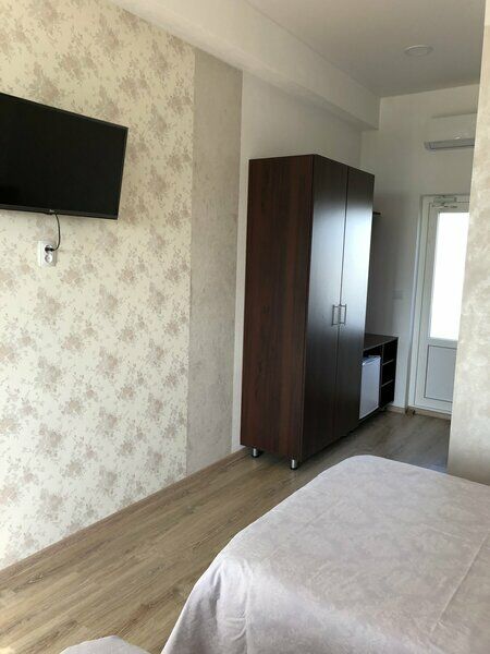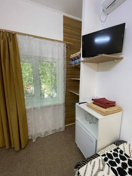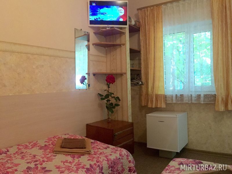 Семейный номер. Площадь номера ( комната + санузел) 24 м.кв Этот однокомнатный номер имеет отдельный вход, собственную террасу с мебелью. В номере санузел (душ, умывальник, туалет), жк телевизор, холодильник, сейф, шкаф или гардеробная комната, тумбочка. Спальные места : - двуспальная кровать (140-160) + две односпальные (80-90). Или : - двуспальная кровать (140-160) + односпальная (80) + тахта (110). Некоторые номера оснащены кондиционером.