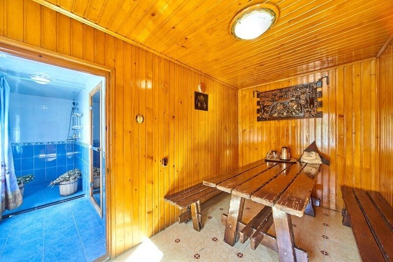 Инфраструктура: бассейнМинимальное время аренды: 2 часаВремя работы: до 23.00Русская баня на дровах с бассейном, наполненным проточной родниковой водой.