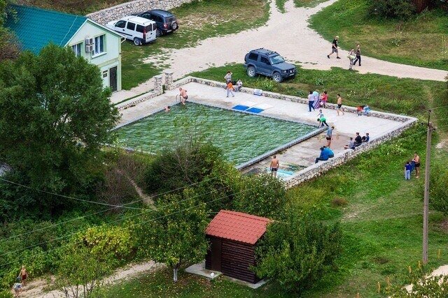 Тип бассейна: открытый бассейнДля желающих поплавать и освежиться на территории усадьбы установлен бассейн с проточной родниковой водой.