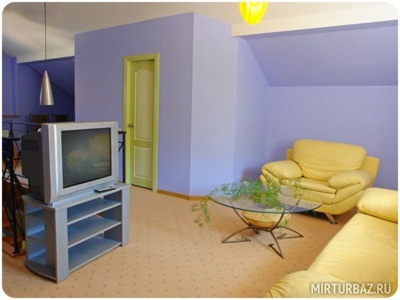 Двухместные номера полностью отвечают стандартам современного гостиничного оборудования. Немецкая мебель, итальянская сантехника, теплые полы и уютный интерьер в стиле модерн. На первом этаже, прекрасно оборудованная кухня, для самостоятельного приготовления пищи, и большой зал, в котором можно организовать дружеский обед или ужин, посмотреть телевизор. Для желающих приготовить пищу на свежем воздухе, рядом с коттеджем оборудована летняя кухня, с русской печью и мангалом. На территории возле коттеджа есть зона для парковки машин.