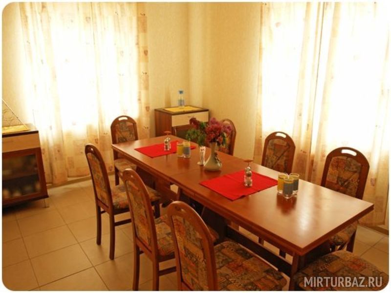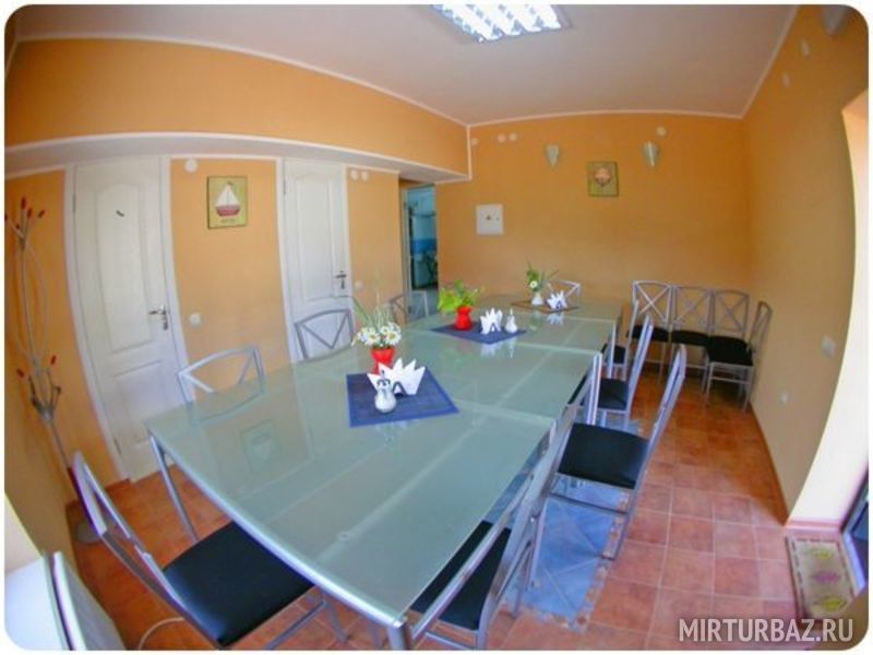 Все номера еврокоттеджа двухместные и полностью отвечают стандартам современного гостиничного оборудования. Немецкая мебель, итальянская сантехника, теплые полы и уютный интерьер в стиле модерн. Во всех номерах санузлы с душевыми кабинами, горячая и холодная вода круглосуточно. На первом этаже, прекрасно оборудованная кухня, для самостоятельного приготовления пищи, и большой зал, в котором можно организовать дружеский обед или ужин, посмотреть телевизор. Для желающих приготовить пищу на свежем воздухе, рядом с коттеджем оборудована летняя кухня, с русской печью и мангалом. На территории возле коттеджа есть зона для парковки машин.