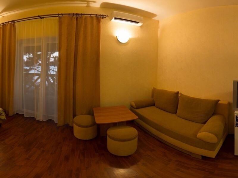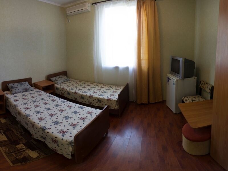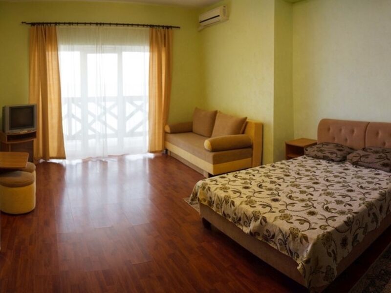 июль 2020 г.Хороший отдыхПровели две недели в прекрасном месте! Для кого-то может показаться Крым и его отели совковыми и неуютными, но мы неприхотливы, поэтому довольны. Номер достался на втором этаже с видом на море, поэтому вечера превращались в сказку, когда наступал закат. Огромный балкон, шум моря, светлый большой номер. В номере двуспальная кровать, диван, стол и два пуфика, шкаф, холодильник, телевизор и кондиционер.Чистое белье, чистые приятные полотенца, мыло. Уборка по просьбе, что удобно, не надо прыгать по утрам. Белье меняли каждые три дня! В холле чайник, кулер и утюг, прачечная платно( 1 кг- 200руб ). Персонал незаметный, но действенный. На территории лежаки, столики для посиделок, теннисный стол, кран для обмыва ног. Территория чистая, ухоженная.Пляж песчаный, чистый. Много кафе и детских площадок. Рядом рынок, автостанция и недорогие магазины.Впечатления только хорошие, надеемся следующий приезд также ничем не омрачится. Персоналу спасибо и удачи !