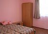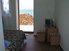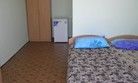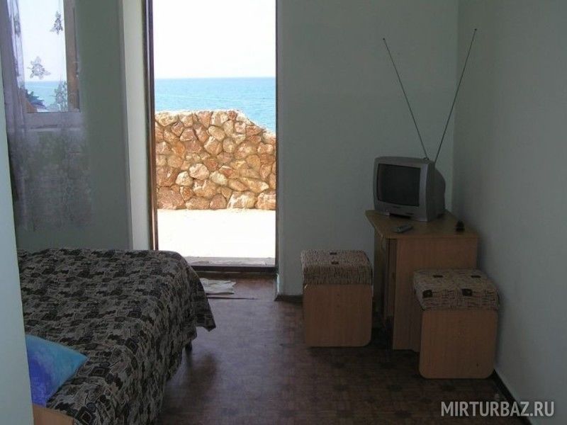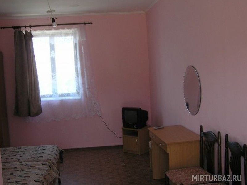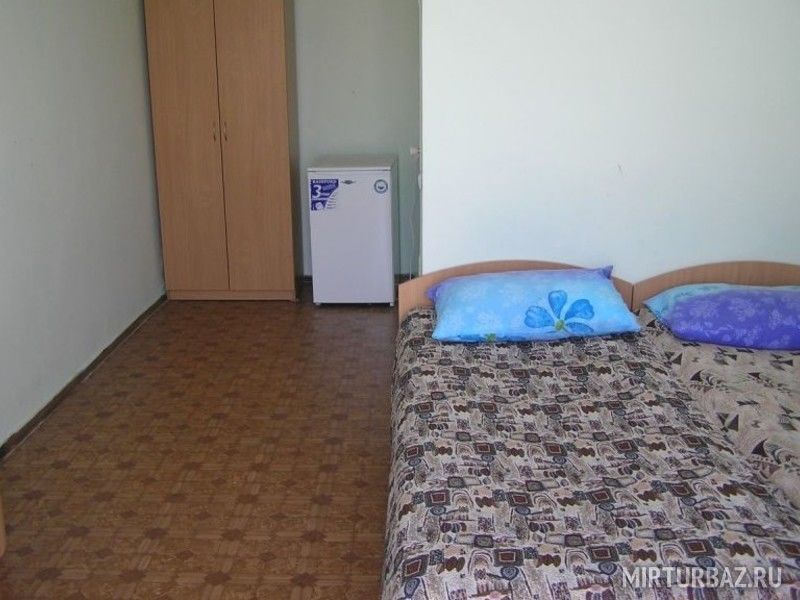 4 номера: площадь номера 14,5 или 15 кв.м., первый этаж, вход со стороны моря, маленькое окно; один номер имеет вход с торца здания, с внутренним двориком. В каждом номере: 2 кровати, 2 тумбочки, 2 пуфика, платяной шкаф, телевизор, холодильник. Санузел – совмещенный: туалет, умывальник, душ, бойлер.