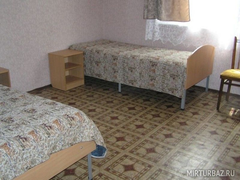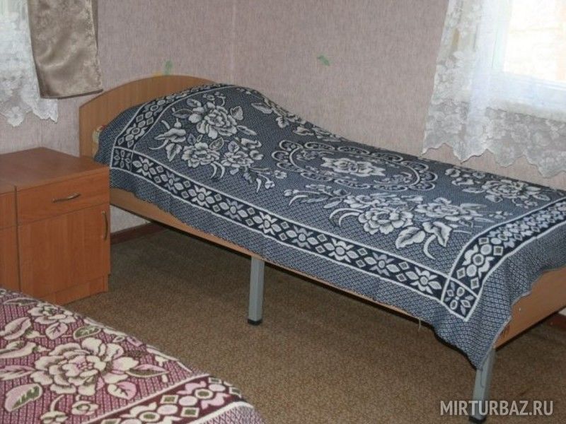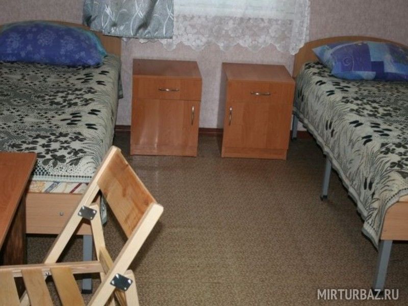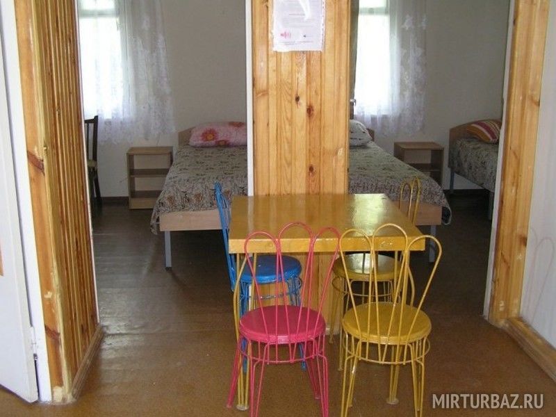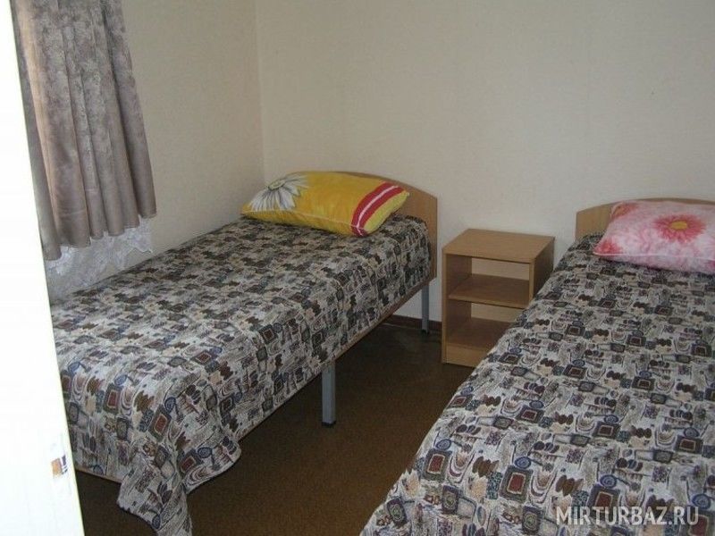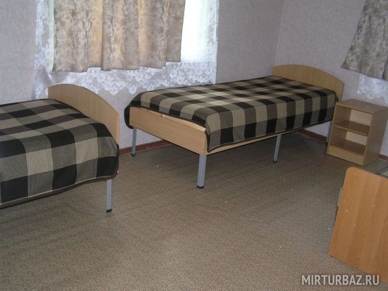 В домике один одноместный номер и 3 двухместных: 1-местный номер (7 или 10 кв.м.): кровать, тумбочка или стул, настенная вешалка; 2-местный номер (10 или 11 кв.м.): 2 кровати, тумбочка, настенная вешалка, стул. Санузел — 4 кв.м. (туалет, умывальник, душ - совмещенный). (Всего 2 домика)