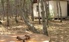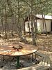 В домике: 3 кровати, платяной шкаф, тумбочки, стулья, стол, зеркало, 2 пуфика, телевизор;