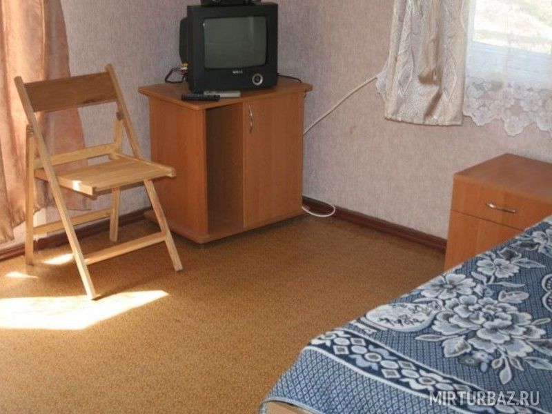4 номера: площадь номера 16,5 кв.м., второй этаж, вход со стороны базы, окно - с видом на море. В каждом номере: 2 кровати, 2 тумбочки, 2 пуфика, платяной шкаф, стул, журнальный столик, зеркало, телевизор, холодильник. Санузел – совмещенный: туалет, умывальник, душ, бойлер.