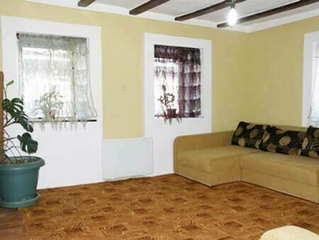 В домике 2 х спальная кровать, диван, диванчик, 2 кресла, холодильник, ТВ, терраса для проведение праздников, душевая совмещенная.