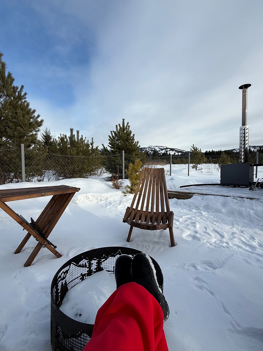 Премиальная купель Фурако большого размера расположена в шаговой доступности от дома «Брусника». Здесь можно насладиться целебным паром на свежем воздухе, погрузиться в атмосферу умиротворения и любоваться живописными видами, окружающими базу отдыха.