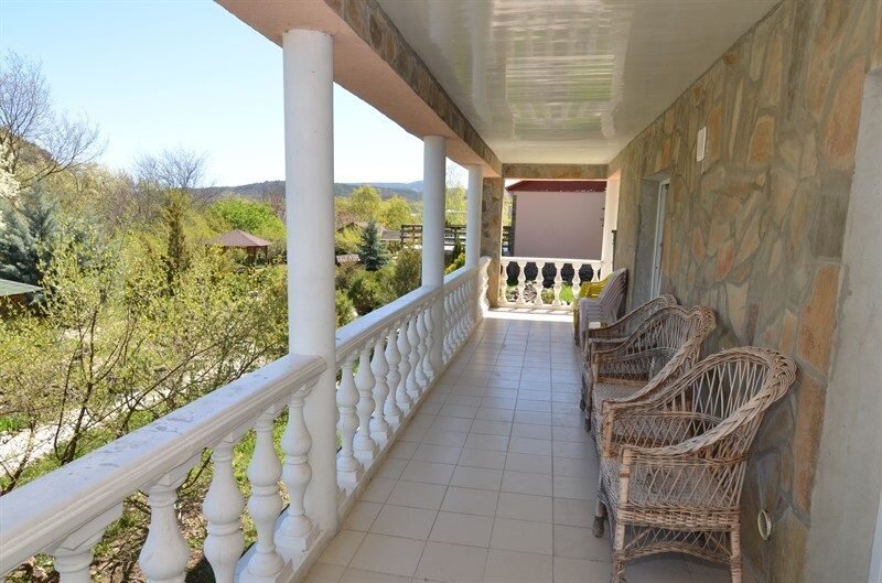 Для наполнения номеров использовалась мебель из красного дерева с металлической ковкой ручной работы. В интерьере использованы эксклюзивные экологически чистые отделочные материалы. В каждый номер подается горная родниковая вода, прошедшая специальную очистку. Нагрев воды (и предварительное отопление) осуществляется за счет солнечной энергии. В каждом номере большая площадь остекления. Через окна открываются захватывающие дух виды на пещерный монастырь Качи-Кальон, Алимову балку, Качинскую долину.
