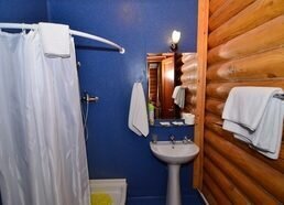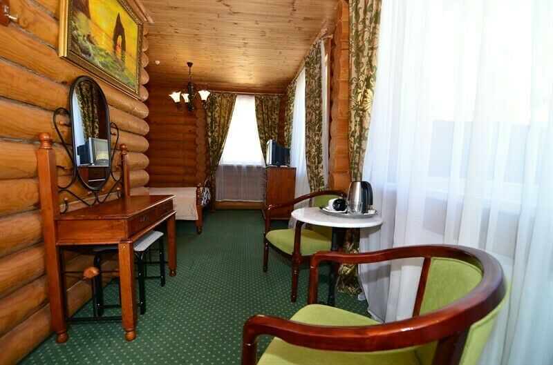 немного "обшарпанные" номера (ковры, ступеньки). Я понимаю, что это такая концепция бревенчатого дома, но... чуть не хватает уюта, ухоженности. Надо бы крючки на стену для верхней одежды сделать. Хотя в целом все хорошо, матрасы, постельное, полотенца - все хорошее и даже есть халаты.
