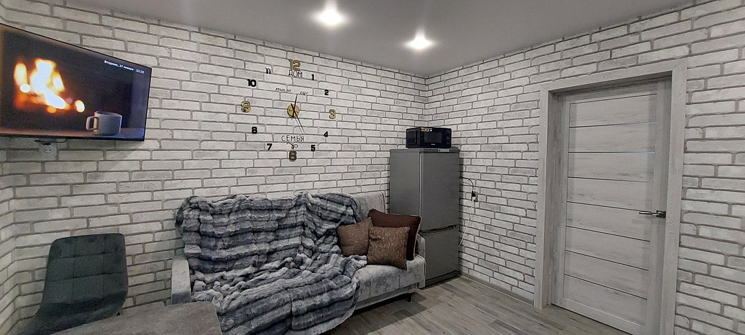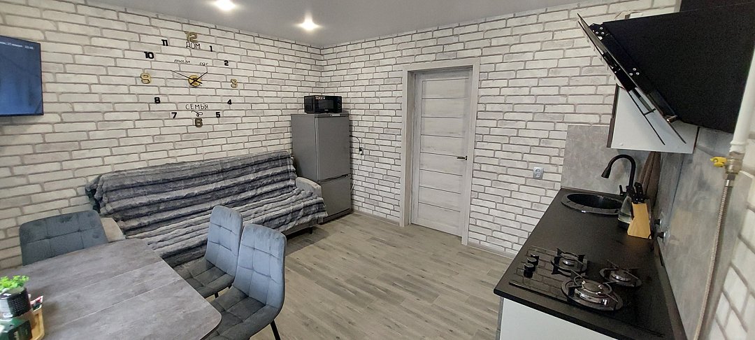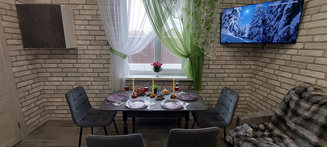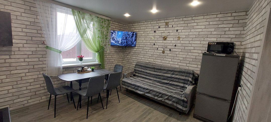 Особое внимание уделено деталям: в доме всегда чисто, постельное белье свежее, а в ванной комнате — полный набор гигиенических средств. Кухня оборудована всем необходимым — от варочной панели до микроволновки и набора специй. Даже если вы приедете поздно, в холодильнике вас уже будут ждать пельмени и напитки, чтобы не оставаться голодными. Из окон открывается тихий вид во двор, что гарантирует спокойствие и уединение вдали от городского шума.