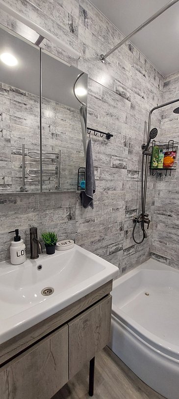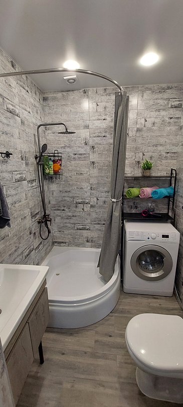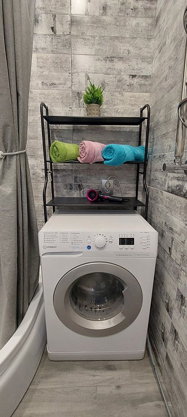 В ванной комнате всегда в вашем распоряжении шампунь, гель для душа, мыло, новая мочалка, порошок и капсулы для стирки белья.