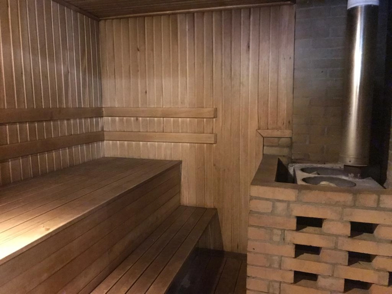 Русская баня на дровах с хорошей парилкой, зоной отдыха и банными принадлежностями.