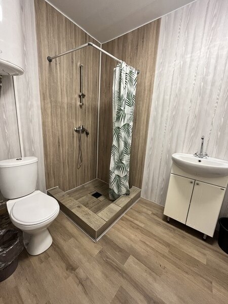Туалеты, душевые, мойка для посуды располагается в отдельностоящем здании, рядом с домиками