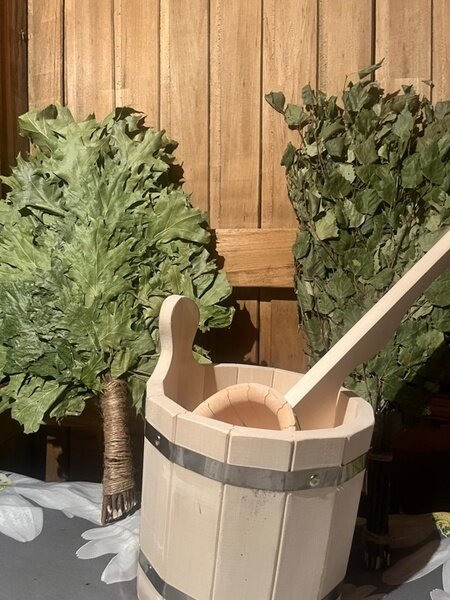 Банный веник приобретается дополнительно: березовый - 250 ₽, дубовый - 450 ₽.