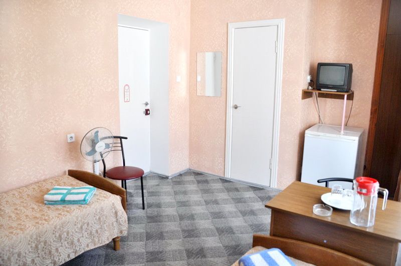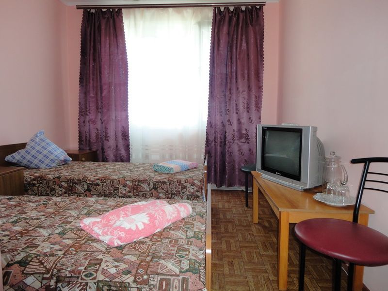 Однокомнатный номер, 2-е односпальные кровати (по желанию можно сдвинуть), холодильник, TV, балкон, душ, санузел, площадь - 15 кв.м.