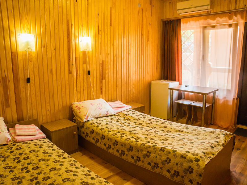 Трехэтажное здание отеля разместилось на небольшой благоустроенной территории в 2000 кв.м. и рассчитано на проживание более тридцати отдыхающих. Двухместные номера категории Эконом, Комфорт и трехкомнатный четырехместный номер на последнем этаже оснащены кондиционерами, телевизорами, холодильниками, собственными ванными комнатами с душем.