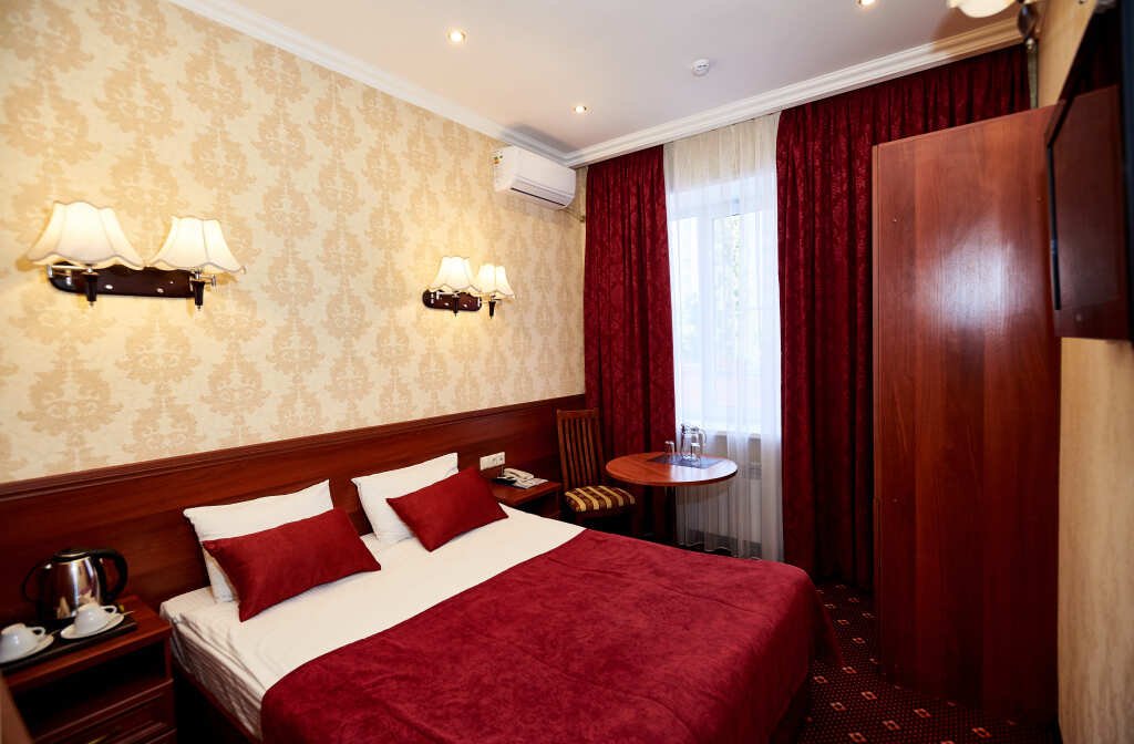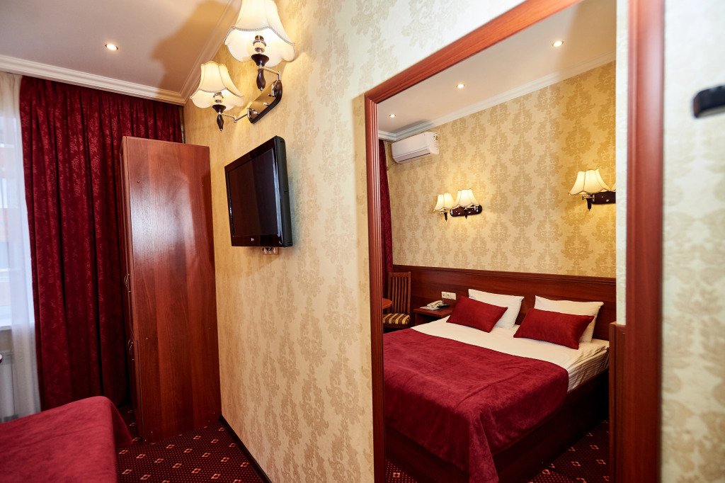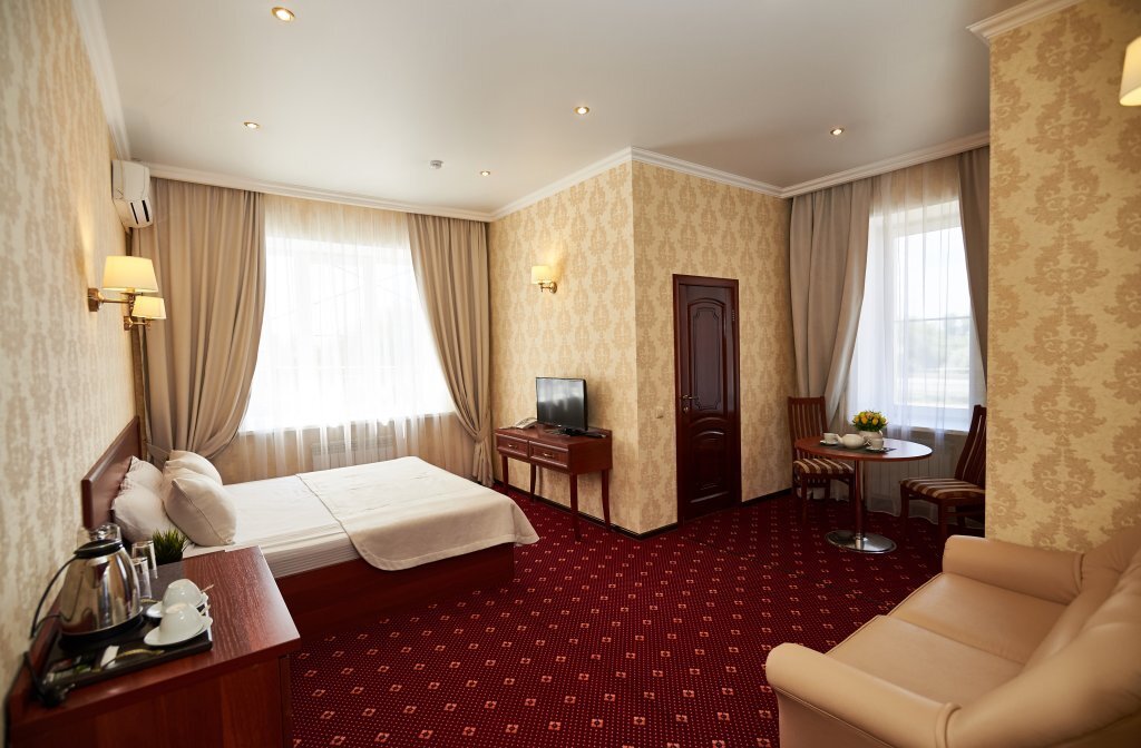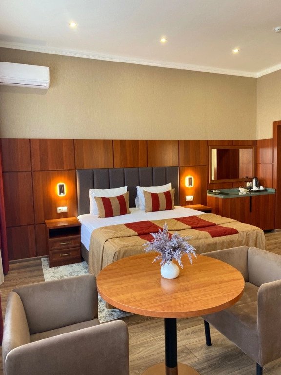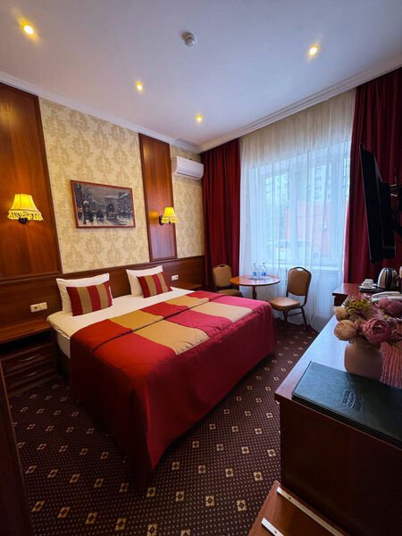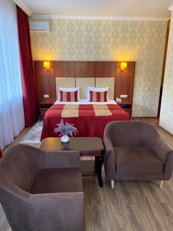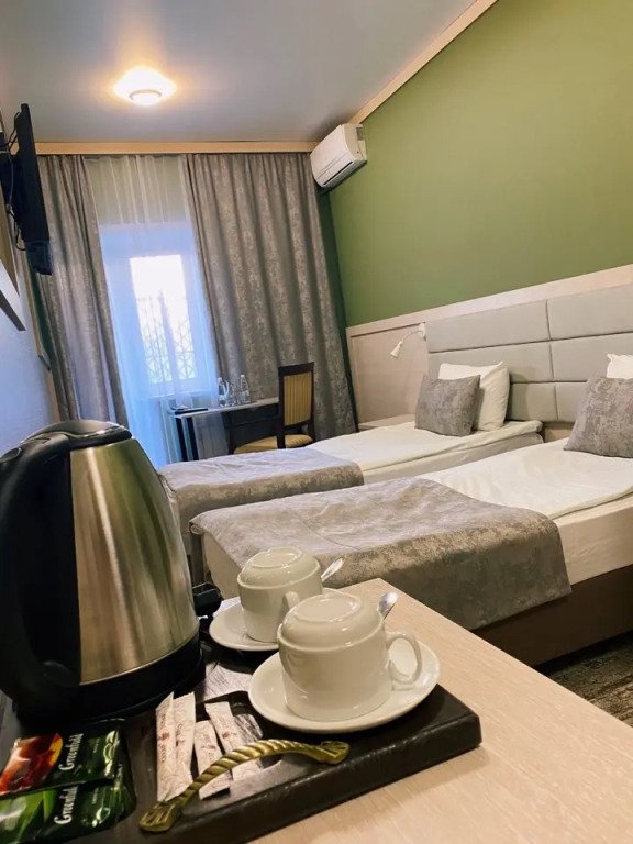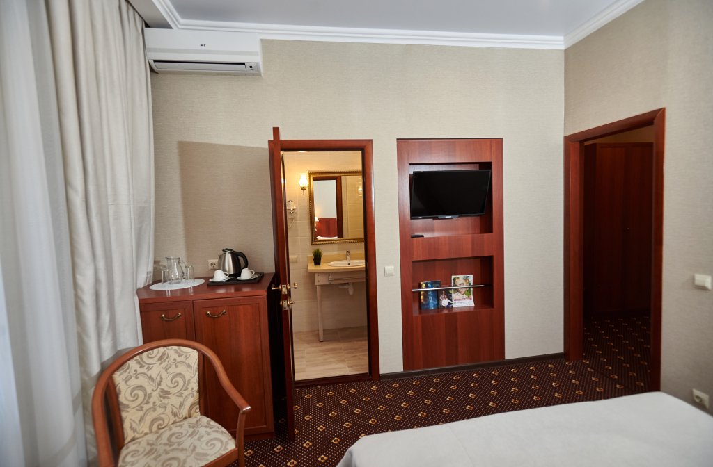 В номере для удобства гостей: кондиционер, холодильник, телевизор, фен, утюг, чай и кофе, отопление.