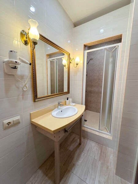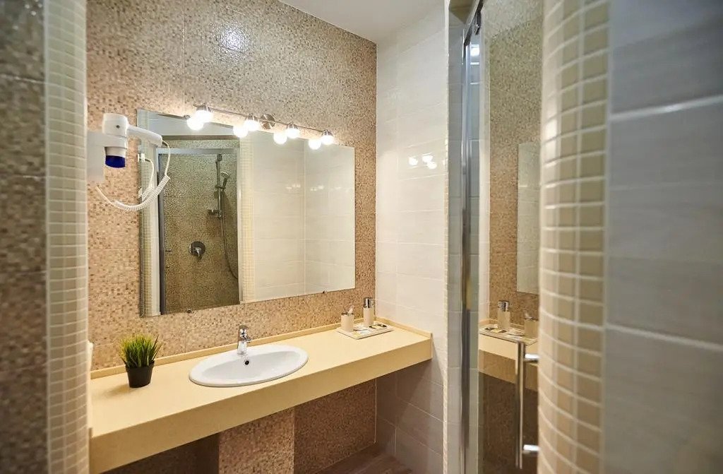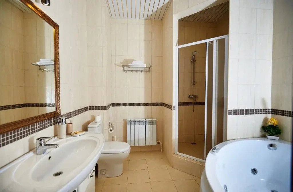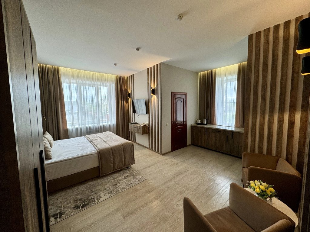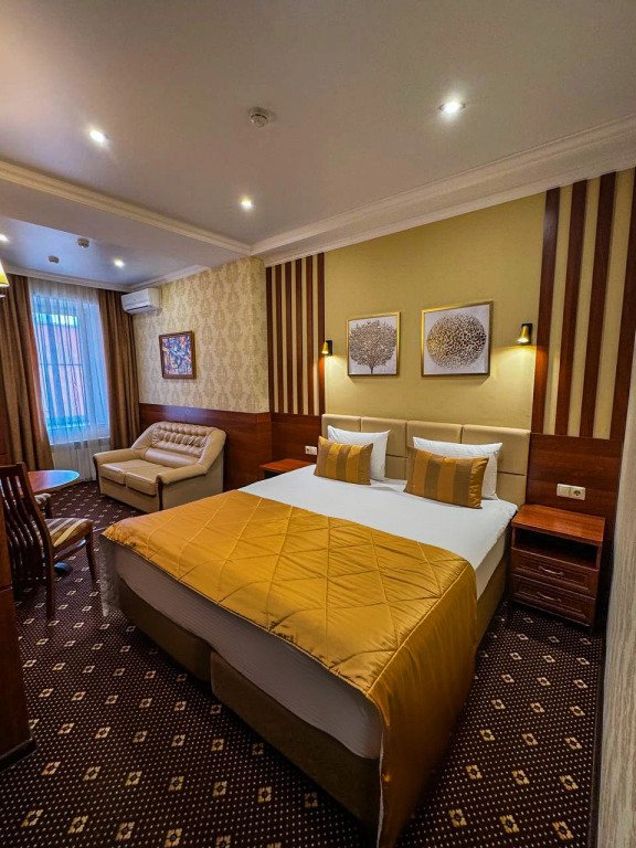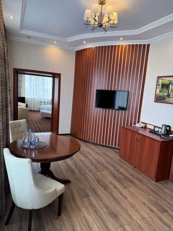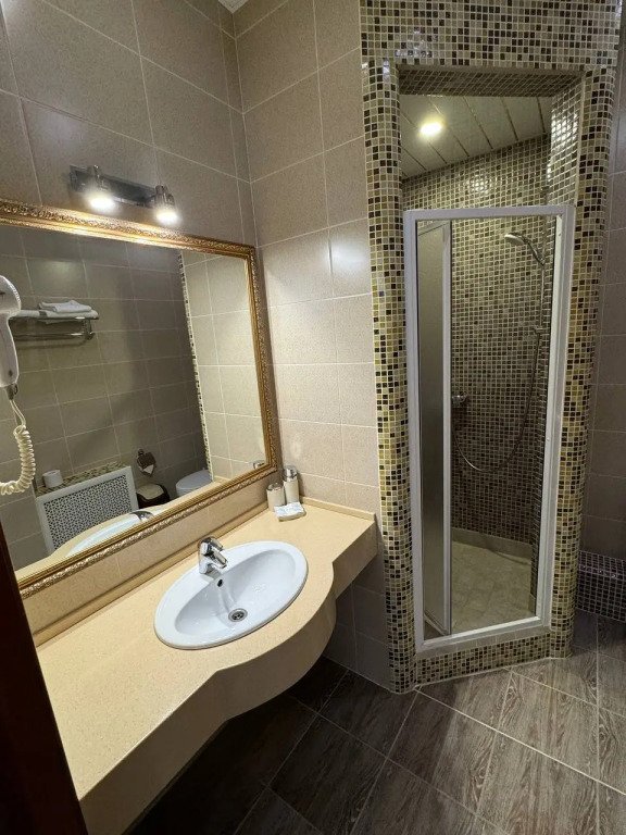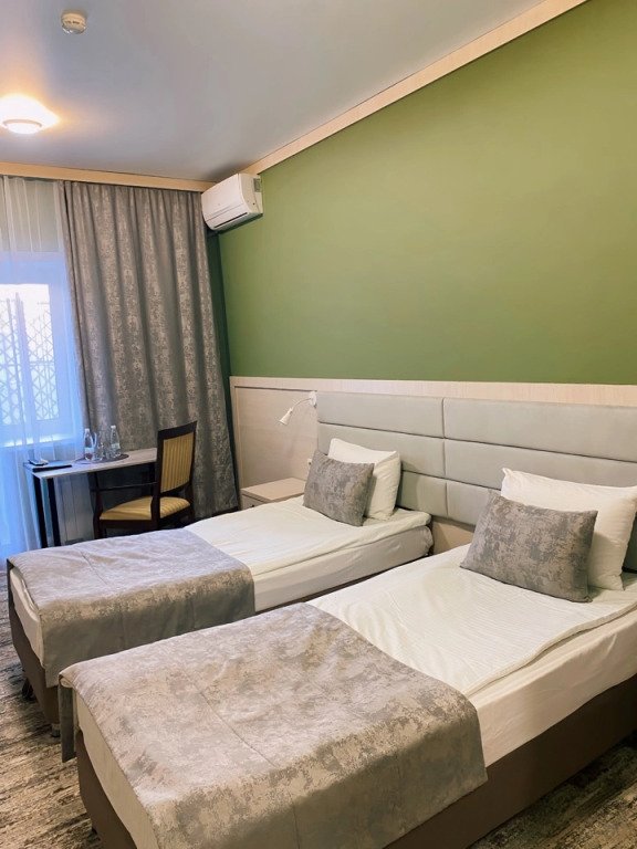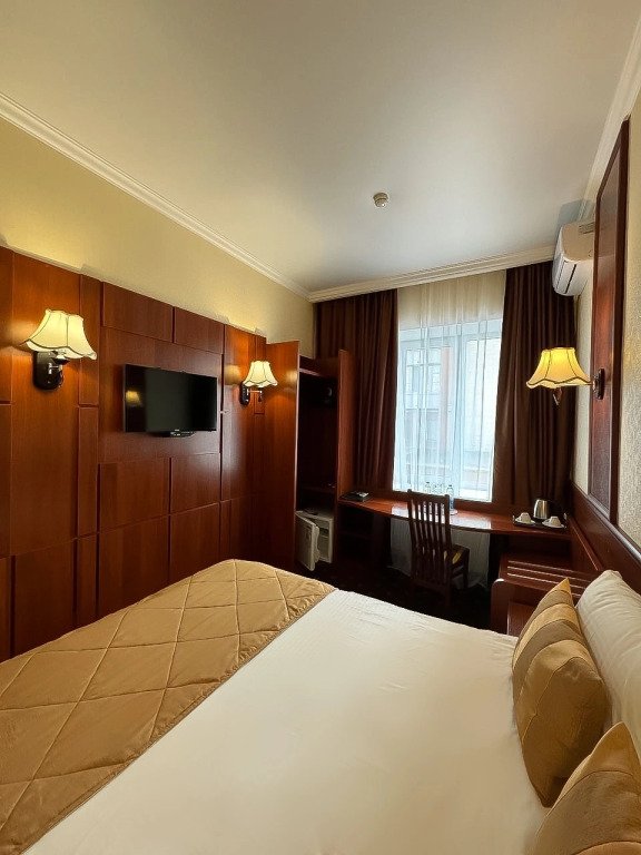 В номере для удобства гостей: кондиционер, холодильник, телевизор, фен, утюг, чай и кофе, отопление.
