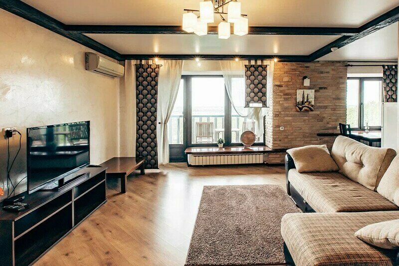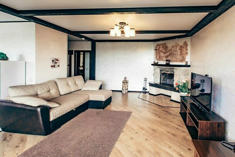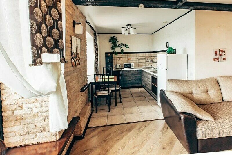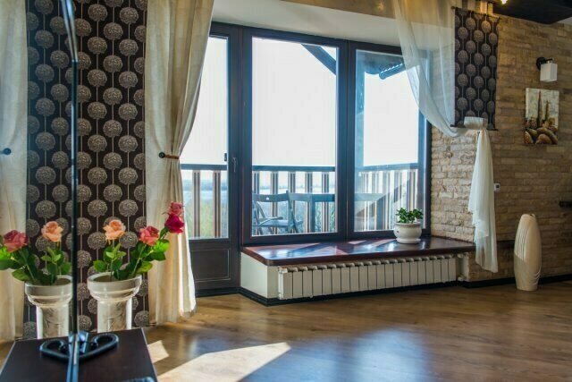 Включает в себя спальню, дополнительную площадь для отдыха/работы, прихожую, отдельное помещение с кухонным уголком, предназначенное для приготовления пищи. Туалет и душ совмещены. Имеются действующий камин, кондиционер, фен, телевизор, холодильник с мини-баром, микроволновая печь, Wi-Fi. Окна и балкон с видом на реку Волгу. Возможна организация дополнительных спальных мест