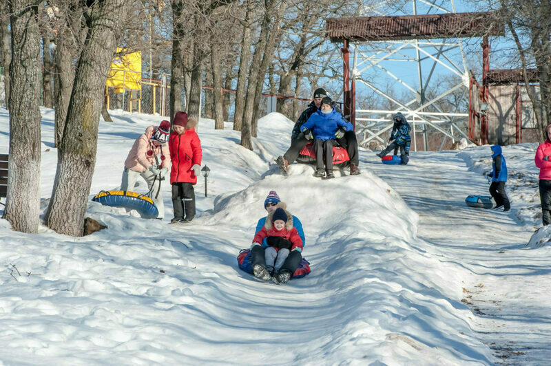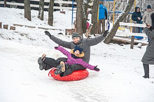 Здесь кататься на тюбинге можно круглый год, так как горка (120 м) — всесезонная и оснащена системой водного орошения. Тюбинговая трасса по вечерам освещена, что позволяет кататься допоздна.