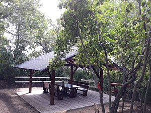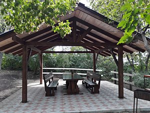 Вы можете разместиться большой компанией за удобным длинным столом беседки, воспользоваться мангалом и мойкой.