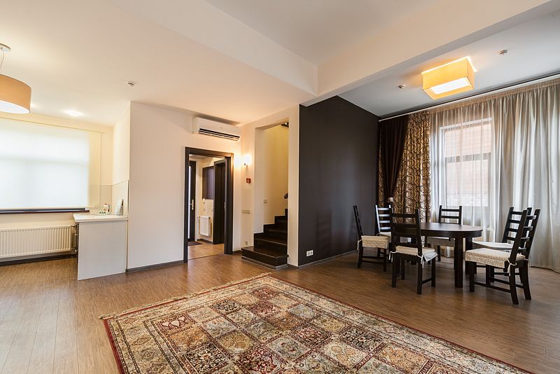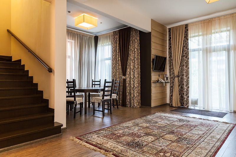 Номера имеют собственную большую террасу и отдельный вход. Просторный двухэтажный номер (107 м2), располагающий всем необходимым для комфортного отдыха. Идеально подходит для длительного проживания. В апартаментах три спальные комнаты, гостиная и кухня.